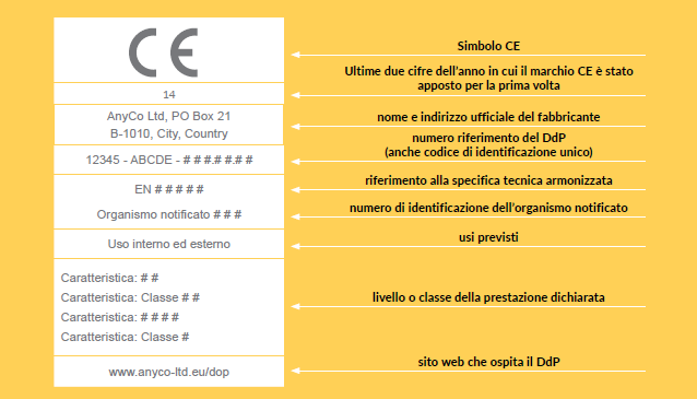 Dovete obbligatoriamente includere le ultime cifre dell’anno in cui questo specifico marchio CE è stato apposto per la prima volta. Se modificate le informazioni nella dichiarazione di prestazione legata a questo marchio CE dovete anche aggiornare tali cifre.